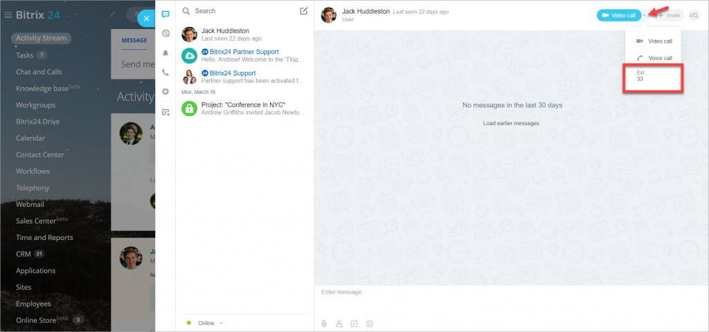 - Bằng cách gọi số điện thoại nội bộ trên Bitrix24 Messenger.