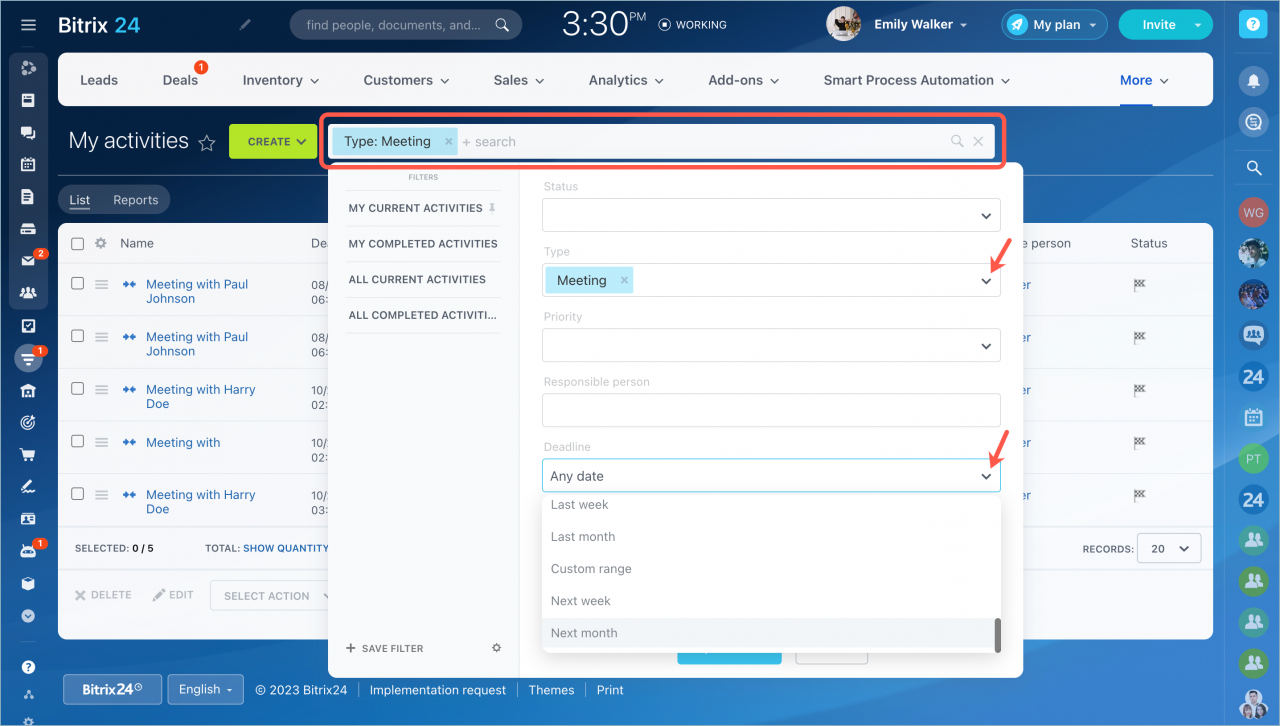 | Đọc thêm thông tin trong bài viết: Tìm kiếm các mục CRM bằng bộ lọc. |